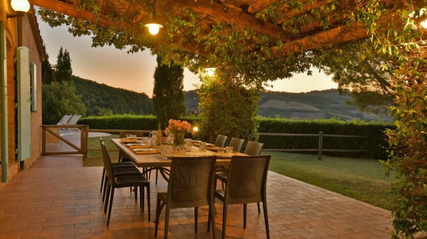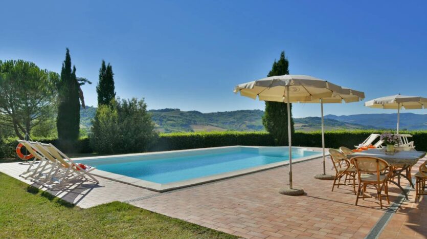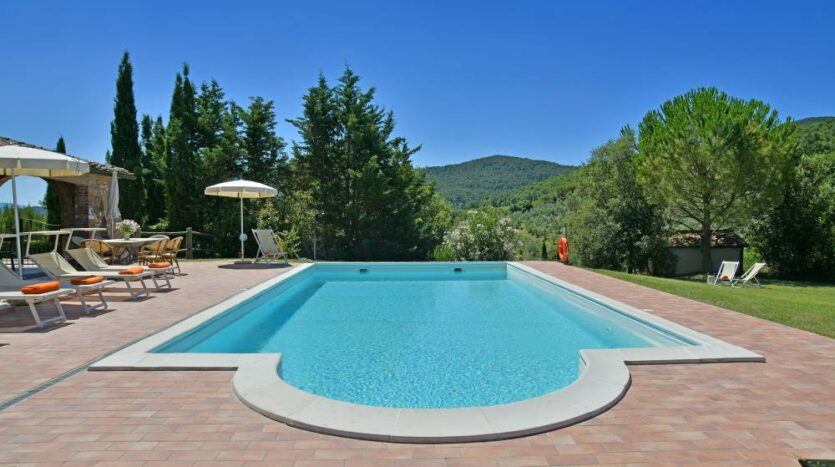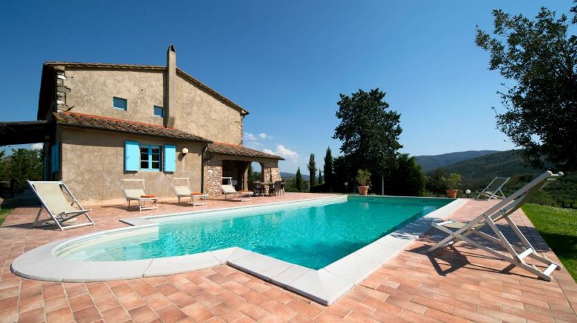 The villa’s outdoor area boasts a portico, barbecue, and a large private pool, making Villa Ulivo the perfect retreat for your Tuscany vacation.