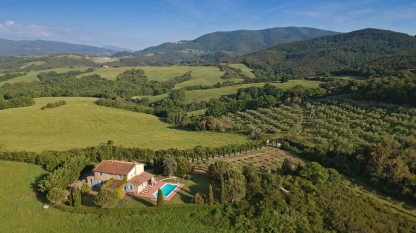 This Stunning Villas in Tuscany restored is part of a 1,600-acre agricultural estate.